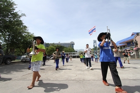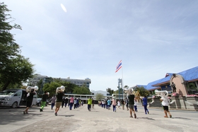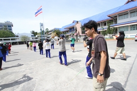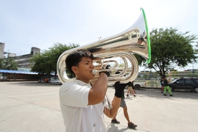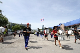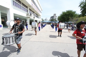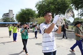 News วันนี้มาสังเกตการณ์ฝึกซ้อมวงดุริยางค์ของเบญจมฯเมื่อเวลาประมาณ 11.00 น. ท่ามกลางท้องฟ้าใสๆ แสงแดดจัดจ้าน กระทบผิวแสบๆคันๆ ใครไม่ทาครีมกันแดดรับรองเกรียม แต่นักดนตรีดุริยางค์ทั้งเล็กทั้งใหญ่ตั้งแถวซ้อมเพลงดังสนั่นทั้งเพลงมาร์ชโรงเรียน ทั้งเพลงอื่นๆที่จะต้องใช้ในงานพาเหรดร่วมขบวนแห่ในวันเปิดงานนมัสการหลวงพ่อโสธร พวกเขาทั้งน้อง พี่ และครูผู้ควบคุมเดินแถวเป็นระเบียบเรียบร้อยและแต่ละคนถือเครื่องดนตรีไว้ในมืออย่างเข้มแข็ง พร้อมทั้งบรรเลงเพลงตามที่ฝึกซ้อมในร่มมาแล้ว เสียงดนตรีที่บรรเลงกระหึ่มไปทั้งบริเวณสนามหน้าโรงเรียนมันช่างเร้าใจคนฟังยิ่งนัก... ยิ่งได้เห็นความเข้มแข็ง ความเป็นระเบียบเรียบร้อย และความพร้อมเพรียงประสานเป็นหนึ่งเดียวแล้ว... ขอชื่นชมครับ
