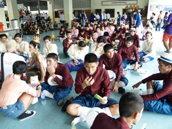 หลังจากขบวนเดินไปถึงตลาด และกลับมาถึงโรงเรียน ซึ่งที่นี่ฝ่ายบริการได้จัดเตรียมน้ำ ขนม และข้าวมันไก่เอาไว้ต้อนรับนักเรียนที่มาร่วมกิจกรรมทั้งหมด และที่นี่เองผู้อำนวยการได้กล่าวชื่นชมนักเรียนที่เสียสละมาเป็นตัวแทนในขบวนแห่ทั้งหมด รวมถึงผู้เกี่ยวข้องด้วย จากนั้นได้บันทึกภาพไว้เป็นที่ระลึกร่วมกัน