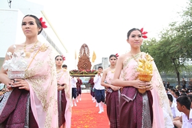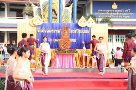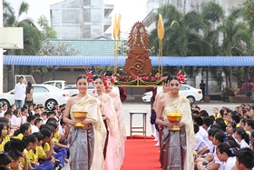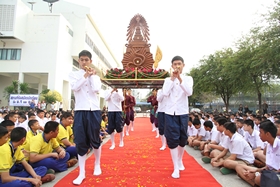 พิธีการในวันนี้เริ่มจากขบวนแห่พระเกี้ยว ตราสัญลักษณ์ของโรงเรียน ประกอบการบรรยายประวัติของโรงเรียน จากนั้นนักเรียนชั้น ม.3 และ ม.6 เดินเข้ามายังบริเวณพิธีนำมาโดยวงดุริยางค์ โดยมีนางสาวชัญญา ประเสริฐ ประธานนักเรียน ปี 2556 ถือธงโรงเรียนนำแถว เมื่อเข้าประจำที่แล้ว พิธีการดำเนินไปจนจบ ซึ่งท่านสามารถเปิดคลิปวิดีโอดูได้