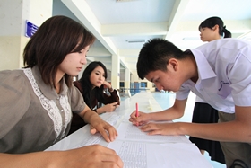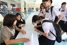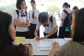 News วันนี้ (6 มีนาคม 2557) เป็นวันที่นักเรียนที่มีรายชื่อในประกาศโรงเรียนเรื่องผ่านการสอบคัดเลือกเข้าเรียนชั้น ม.4 ห้องเรียนพิเศษ จำนวน 60 คน เดินทางมาลงชื่อรายงานตัวเพื่อยืนยันสิทธิ์ในการเข้าเรียน ซึ่งมีนักเรียนทยอยเดินทางมารายงานตัวตั้งแต่ 9.00 น. การรายงานตัววันนี้ต่างจากเมื่อวานนี้คือนักเรียนส่วนใหญ่จะเดินทางมาลงชื่อรายงานตัวด้วยตนเอง ส่วนเจ้าหน้าที่จะรอรับรายงานตัวจนถึงเวลา 12.00 น.