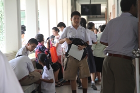 นักเรียนทุกระดับฟังประกาศผลการเรียนภาคเรียนที่ 2