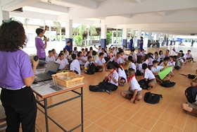 News วันนี้ (29 เมษายน 2557) เป็นวันที่กลุ่มสาระการเรียนรู้วิชาวิทยาศาสตร์ ได้รับมอบหมายให้ทำการจัดกิจกรรมสำรวจเพื่อปรับพื้นฐานการเรียนรู้ของนักเรียนชั้น ม.1 เบญจมฯศูนย์บางเตย ซึ่งมีนักเรียนมาเข้าร่วมกิจกรรม 77 คน กิจกรรมวันนี้มีคุณครูจากกลุ่มสาระฯวิทยาศาสตร์นำมาโดยครูลำยอง ไทยตระกูล หัวหน้ากลุ่มสาระฯ มีพี่เลี้ยงซึ่งเป็นนักเรียนชั้น ม.ปลายประมาณ 30 คน ผลัดเปลี่ยนหมุนเวียนกันมาช่วยดูแล ที่สำคัญมากนั่นคือกองทัพต้องเดินด้วยท้อง งานนี้ครูเพ็ญจันทร์ บุญญาวัฒน์หรือครูแป๋ม เป็นแม่งานยกครัวมาไว้ที่ศูนย์บางเตย ทำอาหารเลี้ยงทั้งครูและนักเรียน ตลอดจนคนงานที่กำลังปรับปรุงสถานที่ด้วย