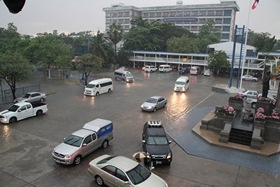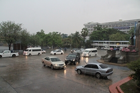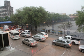 เวลาผ่านไปกว่า 1 ชั่วโมงแล้ว ฝนยังตกหนาเม็ดอยู่ครับ... ยินดีด้วยที่วันนี้อากาศจะเย็นสบาย แต่ต้องแลกมาด้วยความไม่สะดวกในการสัญจรครับ