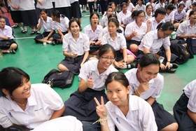 News วันนี้(10 มิถุนายน 2557) ตั้งแต่เวลา 15.30 น. มีกิจกรรมคัดเลือกวงดนตรีสากลเพื่อขึ้นเล่นในวันงานสถาปนาโรงเรียน ที่จะจัดขึ้นในวันที่ 20 มิถุนายน นี้ ปรากฏว่ามีวงดนตรีสมัครหลายวงด้วยกัน และมาเล่นต่อหน้ากรรมการเพื่อคัดเลือกวงดนตรีที่มีความสามารถจำนวนหนึ่งเพื่อแสดงโชว์กันในวันนั้น จากที่ได้ชมและฟังการบรรเลง ขอชื่นชมว่านักเรียนมีความสามารถเล่นและร้องได้อย่างดีหลายวง ซึ่งก็คิดว่ากรรมการที่นั่งดูนั่งฟังก็คงจะมองเห็นเช่นเดียวกัน ส่นจะผ่านการคัดเลือกเข้าไปเล่นกี่วงนั้นต้องรอฟังข่าวกันต่อไป