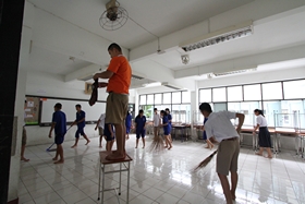 News วันที่ 10 กรกฎาคม 2557 ถือเป็นวันดีๆ ที่ครูและนักเรียนจะได้ร่วมมือร่วมใจทำความสะอาดห้องเรียนครั้งใหญ่ ดังนั้นฝ่ายบริหารบุคคลจึงกำหนดให้นักเรียนทุกห้องเรียนทำความสะอาดห้องเรียน และอุปกรณ์ที่อยู่ภายในห้องเรียนนั้นๆ ได้แก่ โต๊ะ ม้านั่ง ฝาผนัง พัดลม โดยกำหนดให้คา่บเรียนที่ 7-8 เป็นเวลาลงมือทำกิจกรรม Big Cleaning Day ซึ่งก็ได้รับความร่วมมือร่วมใจ สามัคคีกันทำกิจกรรมนี้กันทุกคน ทุกห้อง ... สะอาดเอี่ยมอ่องกันไปทุกตึกเรียนเลยทีเดียว
