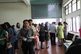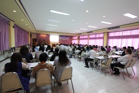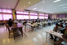 งานแนะแนว วันนี้ (30 กรกฎาคม 2557) ตั้งแต่เวลา 9.00 น. กลุ่มครูแนะแนวโรงเรียนมัธยม 2 จังหวัด (ฉะเชิงเทรา-สมุทรปราการ) จำนวน 100 คน ได้เดินทางมาเข้ารับการอบรมเชิงปฏิบัติการ เรื่อง การพัฒนาครูแนะแนว และบุคลากรทางการแนะแนว : การแนะแนวอาชีพเพื่อการมีงานทำ ซึ่งได้รับการสนับสนุนงบประมาณจากสำนักงานเขตพื้นที่การศึกษามัธยมศึกษา เขต 6 โดยขอใช้ห้องโสตทัศนศึกษา ของโรงเรียนเบญจมราชรังสฤษฎิ์ เป็นที่จัดการอบรม