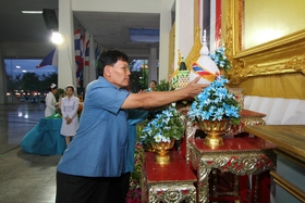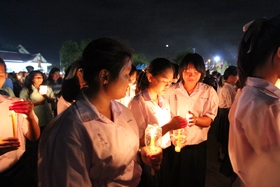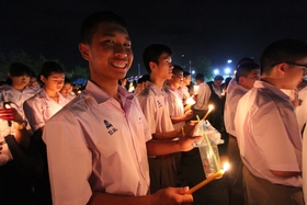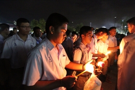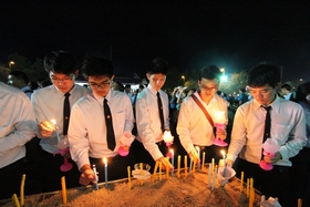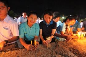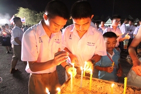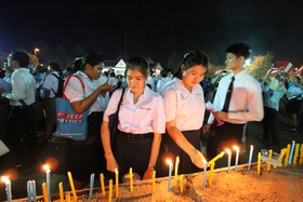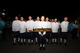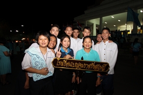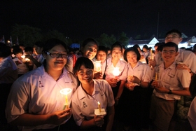 ส่วนในภาคกลางคืน คณะครูและนักเรียนระดับชั้น ม.4 เป็นตัวแทนของโรงเรียนเดินทางไปร่วมกิจกรรมในพิธีถวายพระพรชัยมงคลด้วยการจุดเทียนชัย ทั้งนี้โดยรองฯโกศล กิตตินิรันดร์กุล พร้อมด้วยคณะครู เป็นตัวแทนถวายพุ่มต่อหน้าพระบรมฉายาสาทิสลักษณ์ของสมเด็จพระนางเจ้าสิริกิติ์ พระบรมราชินีนาถ