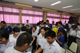 วันนี้ (21 สิงหาคม 2557) ที่ห้องโสตทัศนศึกษา เวลา 9.00 น. มีการเปิดกิจกรรมอบรมนักเรียนแกนนำในแต่ละระดับที่คัดเลือกตัวแทนมารับการอบรม เกี่ยวกับเรื่องยาเสพติด เป็นการสร้างความรู้ และความตระหนักเรื่องพิษภัยของยาเสพติด ให้กับนักเรียนเหล่านี้ไปถ่ายทอดให้กับเพื่อนร่วมชั้นเรียนได้รับรู้อีกต่อหนึ่ง การอบรมนี้เป็นกิจกรรมยุวชนค้านภัยยาเสพติด ซึ่งเป็นกิจกรรมหนึ่งในโครงการสถานศึกษาสีขาวปลอดยาเสพติดและอบายมุข ตามนโยบายแผนยุทธศาสตร์พลังแผ่นดินขจัดสิ้นยาเสพติด พ.ศ.2557 โดยงานดูแลช่วยเหลือนักเรียนที่รับผิดชอบได้รับงบประมาณมาดำเนินการ และได้รับความอนุเคราะห์จากเจ้าหน้าที่ตำรวจ สภอ.เมืองฉะเชิงเทรา มาเป็นวิทยากรให้ความรู้เรื่องยาเสพติด/การป้องกัน/การปราม/และข้อกฏหมาย ถือว่าเป็นกิจกรรมที่ดีต่อสังคมในโรงเรียนอีกกิจกรรมหนึ่ง