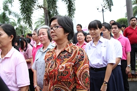 วันนี้ (4 พ.ย.2557) เวลา 14.30 น. ครูวิไลวรรณ เขียวประเสริฐ ครูผู้ดูแลกิจกรรมสิ่งแวดล้อม พร้อมด้วยครูอีกจำนวน 6 คน ได้แก่ ครูสุกัลยา ธุปพงษ์ ครูเพ็ญนภา ทองดี ครูอธิพันธ์ ศรีรุ่งกาญจน์ ครูพัชรี บัวบก ครูพรพิมล ตัญญะ ครูสุนีภรณ์ ศิวรานนท์ ครูณรงค์ นันทวิจิตร รวมทั้งตัวแทนนักเรียนกิจกรรมอนุรักษ์สิ่งแวดล้อม 2 คน คือ น.ส.จริยา เผด็จศึก และ น.ส.สมิตา มีมะโน ทั้งหมดได้เดินทางไปร่วมกิจกรรมโครงการ ฉะเชิงเทราเมืองสะอาด คนในชาติมีสุข เฉลิมพระเกียรติพระบาทสมเด็จพระเจ้าอยู่หัว เนื่องในโอกาสทรงเจริญพระชนมพรรษา 87 พรรษา ณ บริเวณอาคารหน้าศาลากลางจังหวัดฉะเชิงเทรา (หลังเดิม)