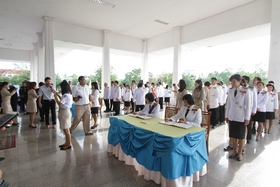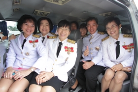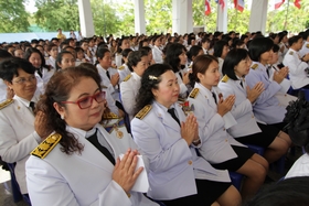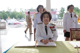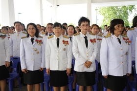 ในการนี้คณะครูจากโรงเรียนเบญจมราชรังสฤษฎิ์ จำนวน 21 คน ได้เดินทางมาร่วมพิธีสำคัญนี้กับส่วนจังหวัดฉะเชิงเทราด้วย