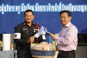 วันนี้(23-01-2558) เวลา 8.20 น. ตัวแทนโรงเรียนโดยนายโกศล กิตตินิรันดร์กุล รองผู้อำนวยการฝ่ายบริหารงานทั่วไป ได้ทำพิธีมอบของขวัญวันปีใหม่เพื่อเป็นการตอบแทนบุญคุณแก่เจ้าหน้าที่ตำรวจจราจร สภอ.เมืองฉะเชิงเทรา ได้มาปฏิบัติหน้าที่อำนวยความสะดวกและความปลอดภัยด้านการจราจรด้านหน้าโรงเรียนทุกวัน ซึ่งในวันนี้มีตัวแทนเจ้าหน้าที่ตำรวจจำนวน 4 นาย มารับมอบกระเช้าของขวัญ และของที่ระลึกบนเวทีหน้าเสาธง พร้อมทั้งอวยพรให้แก่ชาวบ้านเบญจมฯทุกคน และถือโอกาสนี้ขอความร่วมมือจากนักเรียนในการเดินข้ามถนนทุกช่วงเวลา โดยเฉพาะช่วงเวลาเช้า และ หลังเลิกเรียน โดยการให้ปฏิบัติตามสัญญาณจราจรของเจ้าหน้าที่ ทั้งนี้เพื่อความปลอดภัย และเพื่อความคล่องตัวของการจราจรบนท้องถนนด้วย