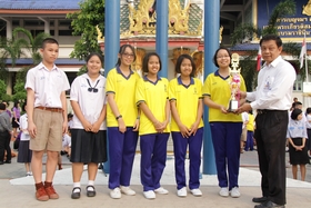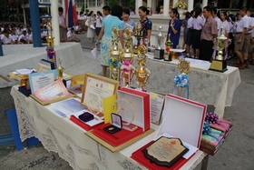 ภาษาไทย วันนี้(13 กุมภาพันธ์ 2558)ณ เวทีหน้าเสาธง คณะครูกลุ่มสาระการเรียนรู้วิชาภาษาไทยจัดให้มีพิธีมอบรางวัลแก่นักเรียนที่เข้าร่วมแข่งขันทักษะทางวิชาภาษาไทยบนเวทีแข่งขันต่างๆทั้งในระดับจังหวัด ระดับภาค และระดับประเทศ ซึ่งมีนักเรียนที่มีความสามารถจำนวนหลายสิบคนขึ้นรับรางวัลในครั้งนี้ สร้างความภาคภูมิใจให้กับนักเรียนทั้งหมดเป็นอย่างยิ่ง ทั้งนี้นายโกศล กิตตินิรันดร์กุล รองผู้อำนวยการฝ่ายบริหารทั่วไป เป็นประธานในพิธี