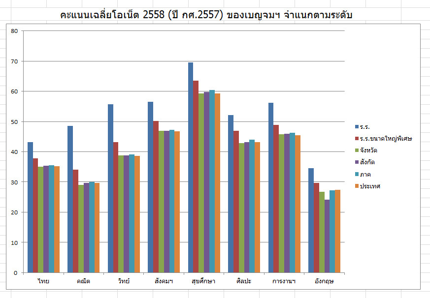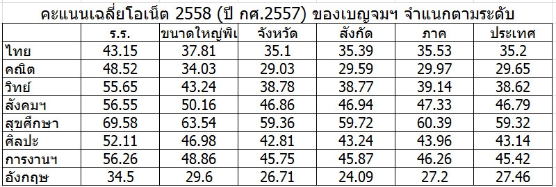 คะแนนเฉลี่ยสอบ O-NET 2558 ของเด็กเบญจมฯชั้น ม.3 สูงกว่าทุกระดับ