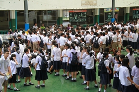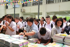 News วันนี้ (1 พฤษภาคม 2558) เป็นวันทำกิจกรรมปฐมนิเทศนักเรียนชั้น ม.2 และ ม.3 ในเวลาเช้า และบ่าย ตามลำดับ วันนี้นักเรียนทั้ง 2 ระดับ ต่างเดินทางมาร่วมเข้ารับฟังการปฐมนิเทศเป็นจำนวนมากประมาณ 95% พร้อมกันนี้คุณครูประจำชั้นต่างก็มาร่วมกิจกรรม และนำแจกหนังสือเรียนให้กับนักเรียนในชั้นที่ตัวเองรับผิดชอบ และในวันนี้นักเรียนต่างเข้าซื้อสมุด และกระเป๋าเรียนใหม่ ที่โรงเรียนโดยสหกรณ์โรงเรียนจัดไว้จำหน่ายด้วย