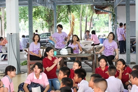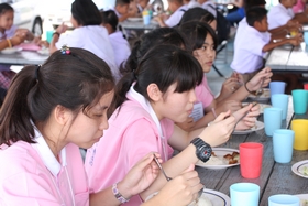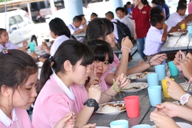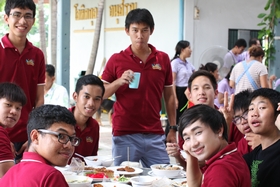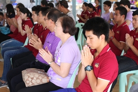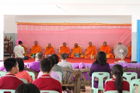 และในวันนี้มีกิจกรรมการทำบุญเลี้ยงภัตตาหารเพลแก่พระสงฆ์ 9 รูป เพื่อความเป็นสิริมงคลก่อนวันเปิดเทอม มีผู้ร่วมงานได้แก่อดีตผู้อำนวยการบุญส่ง ชิตตระกูล คุณลุงสุขันธ์ โลหิตกุล ครูที่ไปร่วมกิจจกรรมปรับพื้นฐานและนักเรียนพี่เลี้ยง+พี่เลี้ยงค่ายอาสา พร้อมทั้งผู้ปกครองนักเรียนจำนวนหนึ่ง ร่วมในพิธีสงฆ์ในวันนี้