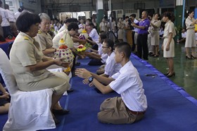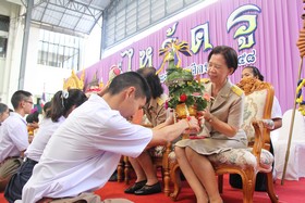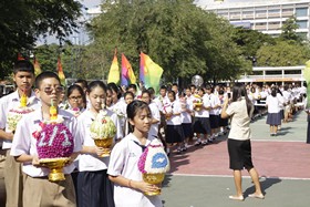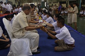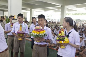พิธีการดำเนินไปด้วยความประทับใจยิ่ง นักเรียนทุกคนมีความตั้งใจที่จะทำกิจกรรมนี้ให้ดีที่สุด ภายหลังจากที่ตัวแทนนักเรียนนำพานดอกไม้ธูปเทียนขึ้นไหว้ครูทุกระดับชั้นแล้ว นายสุทนต์ พรหมนิยม รองผู้อำนวยการ รักษาราชการแทนผู้อำนวยการโรงเรียน เป็นตัวแทนครูกล่าวให้โอวาทแก่นักเรียน จากนั้นเป็นพิธีมอบทุนการศึกษาแก่นักเรียนปัจจุบัน และศิษย์เก่า ที่เรียนดี