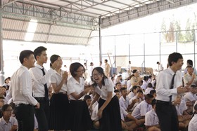 กิจกรรมต่อมาเป็นการขับร้องเพลงประสานเสียงพระคุณที่สาม และนักร้องเดี่ยวเพลงครูในดวงใจ