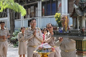 News วันนี้(22 มิถุนายน 2558) ชาวบ้านเบญจมฯได้ให้การต้อนรับผู้อำนวยการชาติชาย ฟักสุวรรณ และรองผู้อำนวยการชูธัช สระพรหม ซึ่งเดินทางมารับตำแหน่งงานบริหารโรงเรียนเบญจมราชรังสฤษฎิ์ โดยมีรองผู้อำนวยการทุกฝ่ายพร้อมคณะครู และตัวแทนนักเรียนให้การต้อนรับ โดยเริ่มจากการถวายพวงมาลาต่อพระบรมราชานุสาวรีย์ รัชกาลที่ 5 จากนั้นขึ้นไปยังห้องทำงานผู้อำนวยการเพื่อลงนามปฏิบัติหน้าที่วันแรก เสร็จแล้วรองฯสุทนต์ พรหมนิยม ได้นำผู้อำนวยการ และรองฯทั้ง 2 คน ไปสักการะสิ่งที่ชาวบ้านเบญจมฯเคารพนับถือ แล้วจึงนำขึ้นสู่ห้องรับรองบนชั้น 3 อาคารสมเด็จพระเทพรัตนฯ ที่บนนั้นมีผู้บริหารโรงเรียนต่างๆ รวมทั้งกรรมการสถานศึกษา กรรมการสมาคมศิษย์เก่าเบญจมราชรังสฤษฎิ์ กรรมการเครือข่ายผู้ปกครอง รวมถึงหัวหน้ากลุ่มสาระฯและกลุ่มงานของโรงเรียนเบญจมฯรอให้การต้อนรับอยู่แล้ว
