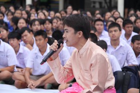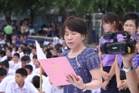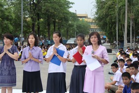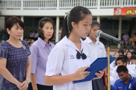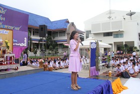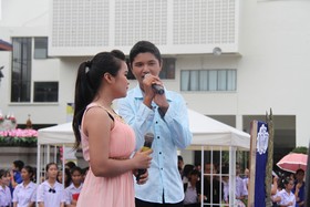 เสร็จแล้วครูอัญชลี พ้นชั่ว หัวหน้ากลุ่มฯภาษาไทยอ่านรายงานกิจกรรม ต่อประธานในพิธี หลังจากนั้นรองฯสุทนต์ พรหมนิยม ในฐานะประธานในพิธีกล่าวเปิดงาน