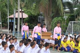กิจกรรมเริ่มจากหามแห่รูปเหมือนของท่านสุนทรภู่ และ ท่านพระยาศรีสุนทรโวหาร (น้อย อาจารยางกูล) มาประดิษฐานยังตั่งหน้าเวทีเสาธง ในขณะเดียวกันนั้นก็มีคลิปเสียงกล่าวถึงประวัติของทั้งสองท่านพร้อมทั้งมีจินตลีลาประกอบ จากนั้นพิธีกร(ครูนุกูล สันทัดค้า)ได้เชิญรองฯสุทนต์ พรหมนิยม จุดเทียนธูปสักการะพระรัตนตรัย เสร็จแล้ววางมาลัยที่รูปเหมือนของทั้ง 2 ท่าน