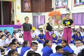 ภาษาไทย ระหว่างวันที่ 2-3 กรกฎาคม 2558 กลุ่มสาระการเรียนรู้วิชาภาษาไทยได้จัดให้มีการแสดงละครกลางแปลง โดยกลุ่มนักแสดงอาชีพ แสดงเรื่องพระไชยสุริยา พระอภัยมณี รามเกียรติ์ตอนพระรามปราบนนทุกข์ อิเหนา มัทนะพาทา โดยให้นักเรียนชั้น ม.1 ม.2 ม.3 ม.4 และ ม.5 ได้ชมตามลำดับ เนื่องจากเรื่องต่างๆเหล่านี้เป็นบทเรียนในหลักสูตรวิชาภาษาไทย ทั้งนี้เพื่อให้นักเรียนได้เรียนรู้วรรณคดีไทยอย่างมีอรรถรส