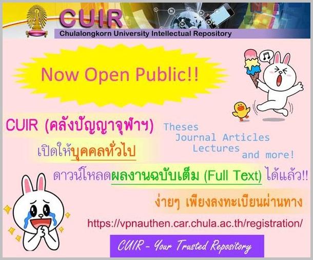Office of Academic Resources (CU Main Library) open the CUIR system for the public now! All online document (Thesis, Journal, etc.) could be download the full-text version free, just register at