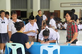 นักเรียนกลุ่มแรกที่เข้าตรวจคือกลุ่มนักเรียนชั้น ม.1 จากศูนย์บางเตย ซึ่งเมื่อเสร็จการตรวจสุขภาพแล้ว นักเรียนจากศูนย์บางเตยเข้าถ่ายรูปเพื่อทำบัตรนักเรียนที่ห้องสตูดิโอของโรงเรียน