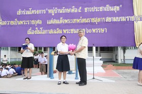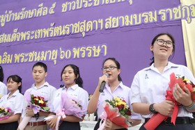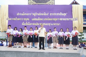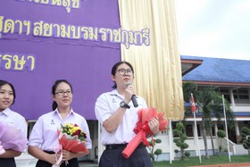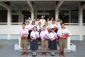มอบช่อดอกไม้ต้อนรับนักเรียนแลกเปลี่ยนที่เดินทางกลับจากต่างประเทศ