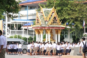 วันนี้ (23 ตุลาคม 2558) ผู้อำนวยการชาติชาย ฟักสุวรรณ พร้อมด้วยรองผู้อำนวยการสุทนต์ พรหมนิยม รองฯชูธัช สระพรหม นายประโยชน์ โสรัจจกิจ นายกสมาคมศิษย์เก่าฯ และคณะครู นำตัวแทนนักเรียนจากชั้น ม.3 เดินทางไปร่วมพิธีถวายพวงมาลาสดุดีพระบาทสมเด็จพระจุลจอมเกล้าเจ้าอยู่หัว สมเด็จพระปิยมหาราช รัชกาลที่ 5 เนื่องในวันสวรรคตของพระองค์ท่าน ที่บริเวณพระบรมราชานุสาวรีย์ รัชกาลที่ 5 หน้าศาลากลางจังหวัด ร่วมกับข้าราชการพลเรียน ทหาร ตำรวจ ข้าราชการส่วนท้องถิ่น ทุกหมู่เหล่าที่เดินทางมาร่วมพิธีเนืองแน่นบริเวณสนามหน้าศาลากลางจังหวัด