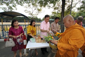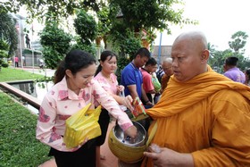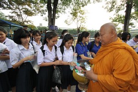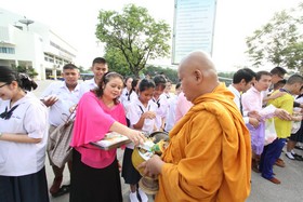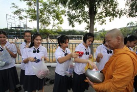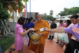 ทำบุญตักบาตรข้าวสารอาหารแห้งวันเปิดเรียนผนวกวันออกพรรษา