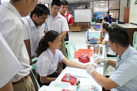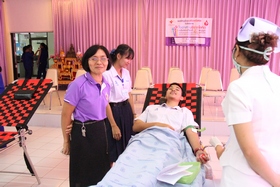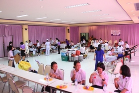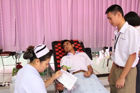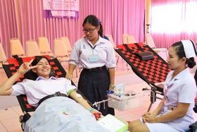 กิจกรรมครั้งนี้ครูอุสาห์ พงษ์ศิริ หัวหน้างานอนามัยโรงเรียน เป็นผู้ดูแล/ประสานงานกับเจ้าหน้าที่สภากาชาดไทย จังหวัดฉะเชิงเทรา