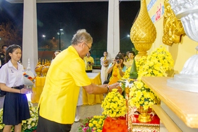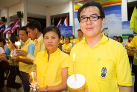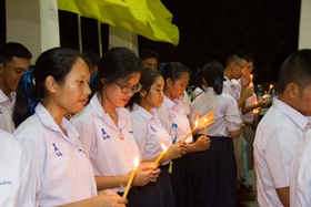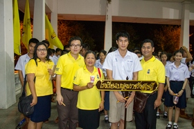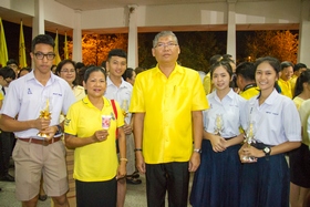 และเมื่อถึงเวลาค่ำ มีกิจกรรมจุดเทียนชัยถวายพระพรด้วย ในการนี้นายชาติชาย ฟักสุวรรณ และครู พร้อมด้วยนักเรียนจำนวนหนึ่งได้มาร่วมพิธีถวายพานพุ่ม และจุดเทียนชัยถวายพระพร จนเสร็จสิ้นพิธี