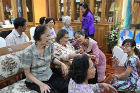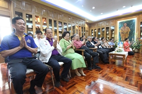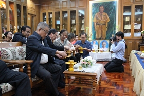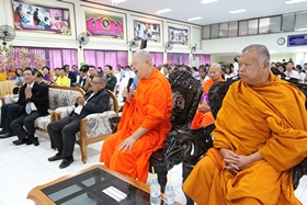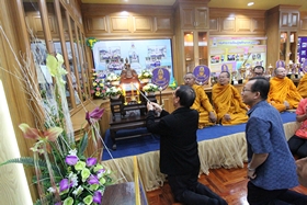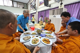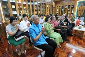 หลังจากนั้นเวลาประมาณ 10.00 น. คณะทั้งหมดได้เคลื่อนไปที่ห้องประชุมชั้น 3 อาคารสมเด็จพระเทพฯ เพื่อทำพิธีทอดผ้าป่า และเลี้ยงภัตตาหารแก่พระภิกษุที่รับนิมนต์มาในพิธี เสร็จแล้วบรรดาผู้มาร่วมงานได้รับประทานอาหารด้วยกันก่อนแยกย้ายกันกลับ