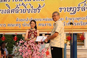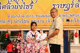 จากนั้นเป็นการแสดง และหลังจบการแสดงแล้วมีการจับสลากมอบรางวัลตุ๊กตาหมีแก่นักเรียนที่โชคดีโดยรองฯทิพย์วัลย์ นุ่มประเสริฐ และมอบอั่งเปาให้แก่นักเรียนที่แสดงทั้งหมดโดยรองฯชูธัช สระพรหม แล้วจึงถ่ายภาพร่วมกันเป็นที่ระลึก