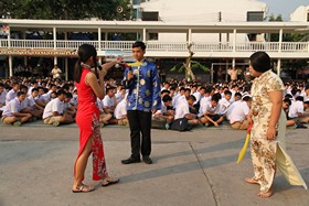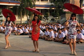 ภาษาต่างประเทศ วันนี้ 4 กุมภาพันธ์ 2559 กลุ่มงานภาษาจีน ในกลุ่มสาระการเรียนรู้ภาษาต่างประเทศ ได้จัดกิจกรรมแสดงความสามารถด้านภาษาจีนและการแสดงของนักเรียนที่เลือกเรียนภาษาจีน ณ สนามหน้าเสาธง ท่ามกลางสายตาครู นักเรียนทั้งหมด โดยมีครูในกลุ่มฯภาษาต่างประเทศลงมาร่วมกิจกรรมกันอย่างพร้อมเพรียง ก่อนการแสดงมีการมอบรางวัลที่นักเรียนไปแข่งขันนอกโรงเรียนให้กับนักเรียนเหล่านั้นโดยผู้อำนวยการชาติชาย ฟักสุวรรณ
