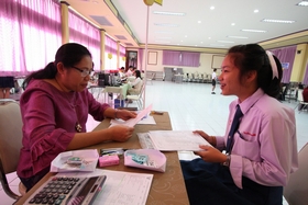 News วันนี้ 21 กุมภาพันธ์ 2559 เป็นวันที่สองของการรับสมัครสอบเข้าเรียนห้องพิเศษชั้น ม.1 และ ชั้น.4 ตั้งแต่เช้ามีผู้ปกครองพานักเรียนเดินทางมาสมัครบางตา โดยเฉพาะอย่างยิ่งในภาคบ่าย แทบจะไม่มีนักเรียนเดินทางมาเลย ทำให้กรรมการรับสมัครต้องหากิจกรรมอื่นๆทำฆ่าเวลา ... การรับสมัครจะมีไปจนถึงวันที่ 24 กุมภาพันธ์ 2559 จากนั้นนักเรียนที่สมัครทั้ง ม.1และม.4 จะไปสอบแข่งขันในวันที่ 5 และ ที่ 6 มีนาคม 2559 ตามลำดับ