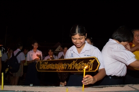 และมีพิธีจุดเทียนชัยถวายพระพรในช่วงเวลากลางคืนประมาณ 19 นาฬิกา