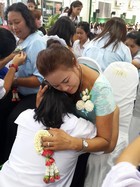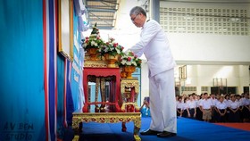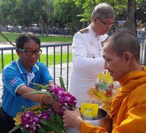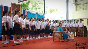 หลังจากนั้นทั้งหมดได้เข้าสู่บริเวณพิธีที่จัดขึ้นในพื้นที่สนามบาสเก็ตบอลด้านล่างอาคารอเนกประสงค์ ซึ่งในวันนี้โรงเรียนได้เชิญตัวแทนแม่ของชั้นเรียนแต่ละชั้นมาด้วย ทั้งหมดทั้งครู นักเรียน คุณแม่ ได้ร่วมพิธีถวายพระพรชัยมงคลต่อหน้าพระบรมฉายาสาทิสลักษณ์ของสมเด็จระนางเจ้าสิริกิติ์ พระบรมราชินีนาถ โดยนายชาติชาย ฟักสุวรรณ ผู้อำนวยการโรงเรียน เป็นผู้นำในการกล่าวถวายพระพร และร้องเพลงสดุดีเฉลิมพระเกียรติ
