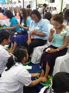 จากนั้นเป็นพิธีการในวันแม่ ซึ่งโรงเรียนได้เชิญแม่ตัวอย่าง และตัวแทนแม่แต่ละชั้นเรียนรับมอบมาลัยกรและแสดงกตัญญุตาด้วยการล้างเท้าแม่ เป็นภาพที่ประทับใจของทุกคน เสร็จพิธีการแล้วได้เชิญคุณแม่ทุกท่านขึ้นรับเกียรติบัตรที่ห้องโสตทัศนศึกษา ก่อนที่จะแยกย้ายกันไปที่ห้องเรียนของบุตรหลานของตนเองเพื่อได้พบกับครูและนักเรียนอีกครั้งหนึ่งเสร็จแล้วจึงแยกย้ายกันกลับ