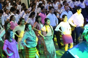 งานในช่วงเวลาค่ำ เริ่มจากการแสดงดนตรีจนถึงเวลา 19.00 น. คณะครูเกษียณขึ้นบนเวทีเพื่อรับมอบของที่ระลึกจากทางโรงเรียน และผู้อำนวยการชาติชาย ฟักสุวรรณ กล่าวแสดงความรู้สึก และขอบคุณผู้มาร่วมงานจากนั้นเป็นการแสดงดนตรี และการแสดงของคณะครูในกลุ่มต่างๆจำนวยน 7 ชุด