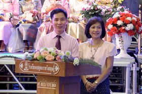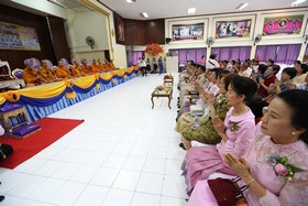 เสร็จจากขั้นตอนนี้แล้ว ทั้งหมดได้เดินขึ้นชั้น 3 อาคารสมเด็จพระเทพฯ เพื่อร่วมฟังพระสวดธัมมจักกัปปวัตตนสูตร ถวายภัตตาหาร และร่วมรับประทานอาหารกลางวันกับแขกรับเชิญ