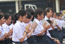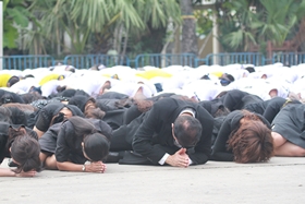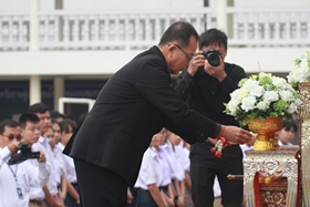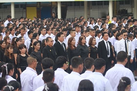 จากนั้นครูอดถลย์ วิริยาพันธ์ ได้อ่านบทกวีเพื่อถวายความอาลัย เสร็จแล้วครูนักเรียนคนงานเจ้าหน้าที่ร่วมร้องเพลงสรรเสริญพระบารมี เสร็จแล้วกราบพระองค์ท่านในพระบรมโกศอีกครั้ง