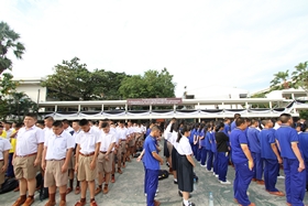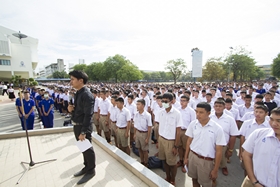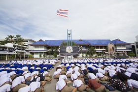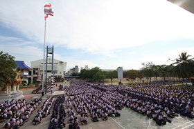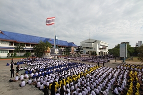 เมื่อทุกคนรับพรพระเสร็จ วงดุริยางค์ทำเพลงสรรเสริญพระบารมี/ทุกคนร่วมร้องเพลง เสร็จแล้วนักเรียนทุกคนก้มกราบพระบรมฉายาลักษณ์พระบาทสมเด็จพระปรมินทรมหาภูมิพลอดุลยเดช ที่ประดิษฐานไว้บนเวทีที่ฐานเสาธงชาติ เป็นอันเสร็จพิธี