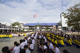 ด้วยความสำนึกในพระมหากรุณาธิคุณของพระบาทสมเด็จพระปรมินทรมหาภูมิพลอดุลยเดช พระองค์ผู้เสด็จสู่สวรรคาลัย วันนี้ (6 ธันวาคม 2559) ตั้งแต่เวลา 8.00 น. ณ บริเวณสนามหน้าเสาธง คณะครู/นักเรียน ทั้งหมด ได้จัดพิธีทำบุญถวายสังฆทานแก่พระสงฆ์จำนวน 89 รูป ซึ่งนิมนต์มาเพื่อทำพิธีที่ชั้นบนทางเดินมีหลังคา โดยผู้บริหารโรงเรียน ครูประจำชั้น และตัวแทนนักเรียน ทั้งนี้เพื่อถวายเป็นพระราชกุศลแด่พระผู้เสด็จสู่สวรรคาลัย พระบาทสมเด็จพระปรมินทรมหาภูมิพลอดุลยเดช