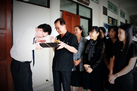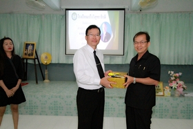 พิธีต้อนรับ ผอ.ชูธัช สระพรหม จัดภายในห้องรับรองของโรงเรียน มีผู้บริหารโรงเรียนทั้งในแปดริ้ว และสมุทรปราการ ตลอดจนผู้นำท้องถิ่นมาร่วมให้การต้อนรับอย่างอบอุ่น ภายหลังจากพิธีการต้อนรับและมอบช่อดอกไม้ / ของที่ระลึกเสร็จแล้ว รับประทานอาหารกลางวันร่วมกันก่อนที่จะแยกย้ายเดินทางกลับ