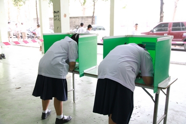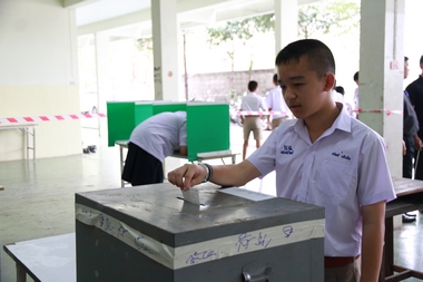 ทั้งนี้มีการแข่งเขตเลือกตั้งเป็น 3 เขต เขตที่ 1 เป็นเขตที่นักเรียนชั้น ม.1-2 ลงคะแนนเสียงอยู่ที่ใต้อาคาร 7 เขตที่ 2 เป็นเขตเลือกตั้งของ ม.3-4 อยู่ที่บริเวณลานใต้ร่มหูกวาง และเขตที่ 3 ซึ่งเป็นเขตเลือกตั้งของ ม.5-6 อยู่ที่ใต้อาคารสมเด็จพระเทพฯ