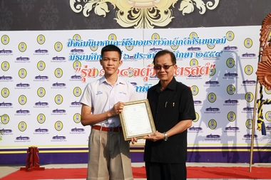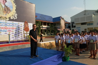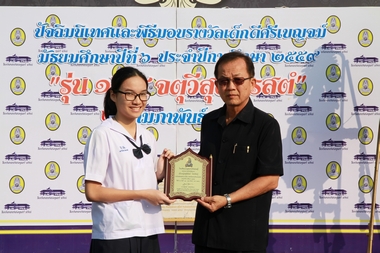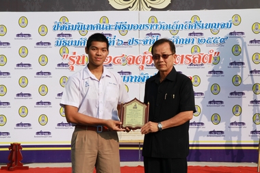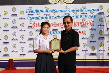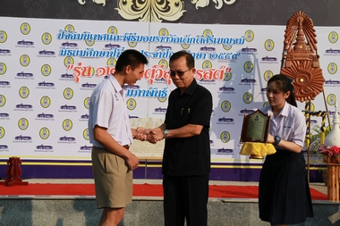พิธีการเริ่มจากนายสุทนต์ พรหมนิยม รองผู้อำนวยการ รักษาราชการแทนผู้อำนวยการโรงเรียน เป็นประธานมอบโล่รางวัล พร้อมมอบปัจฉิมโอวาทแก่นักเรียน จากนั้นเป็นพิธีการมอบธงอำลา โดยมีคณะศิษย์เก่านำโดยพล.ต.ต.สาโจน์ พรหมเจริญ นายกสมาคมศิษย์เก่าฯ มาร่วมเป็นสักขีพยานและรับน้องเข้าร่วมในสมาคมศิษย์เก่า
