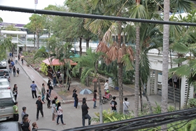 และบนห้องประชุมชั้น 2 อาคารสมเด็จพระนางเจ้าฯ ผอ.ดรวีระชัย ตนานนท์ชัย เป็นประธานประชุมครูผู้ทำหน้าที่เป็นกรรมการคุมสอบ เพื่อให้ผู้เกี่ยวข้องได้ชี้แจงแนวทำความเข้าใจร่วมกันในการปฏิบัติการคุมสอบ เสร็จแล้วกรรมการคุมสอบต่างรับข้อสอบไปดำเนินการยังห้องสอบที่กำหนด