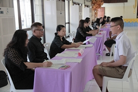 ทั้งนี้ก่อนดำเนินการสัมภาษณ์นั้น รองฯอดินันท์ เดชพงษ์ ได้ประชุมคณะกรรมการเพื่อแจ้งข้อตกลงเป็นแนวทางในการปฏิบัติร่วมกันก่อนที่จะขึ้นปฏิบัติหน้าที่ในเวลา 9.00 น. ณ ห้องโสตทัศนศึกษา