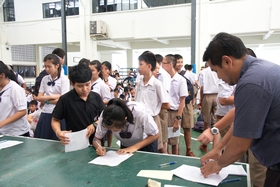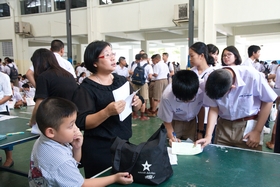 บรรยากาศโดยทั่วไปวันนี้นักเรียนให้ความร่วมมือรับการปฐมนิเทศ และรอรับหนังสือยืมเรียนเป็นอย่างดีเป็นไปด้วยความเรียบร้อย
